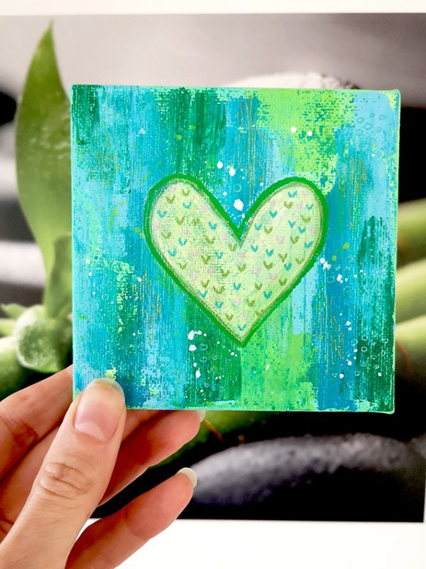 Srce na platnu je dragocen spominček na toplino in srečo, ki ju prinaša ljubezen do sebe in drugih.